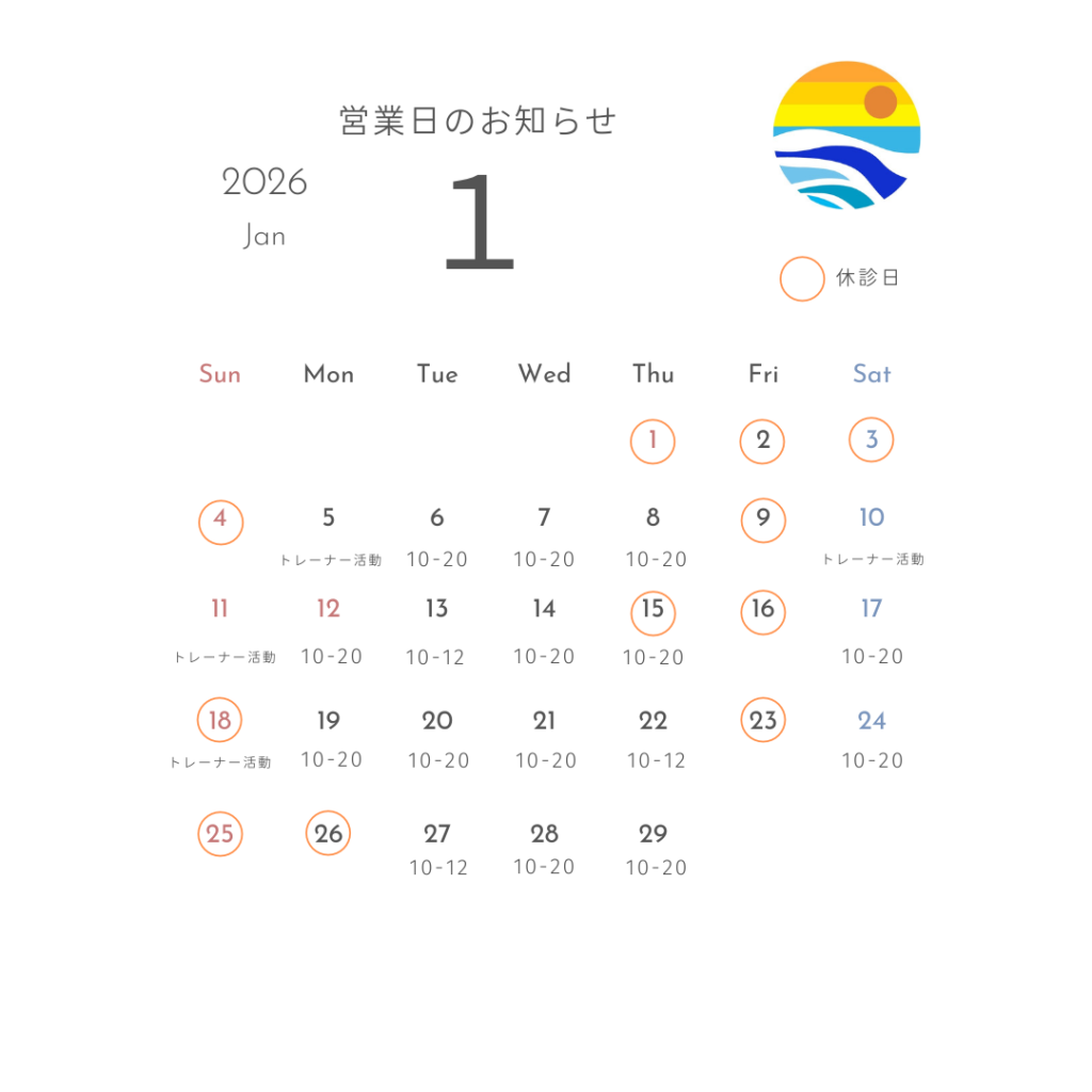 今年も皆さまの健康のサポートに向けて精一杯治療させていただきますので、引き続きよろしくお願い致します。